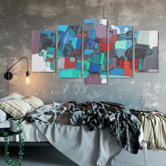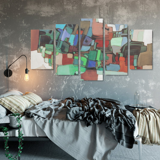 Abstract Painting Green Blue And Red, Five Piece Canvas, Large Abstract Painting, Wall Art, Abstract Wall Art Set, Stretched Ready To Hang