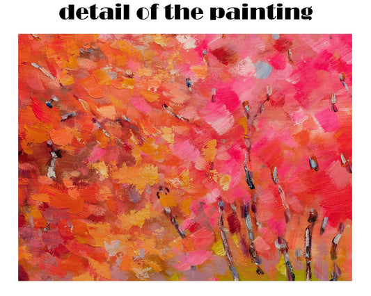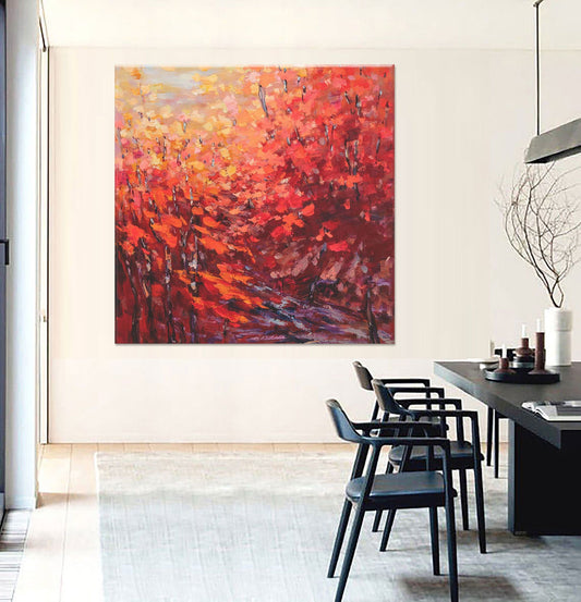 Original Oil Painting, Crimson Forest, Abstract Landscape, Modern Art, Large Art