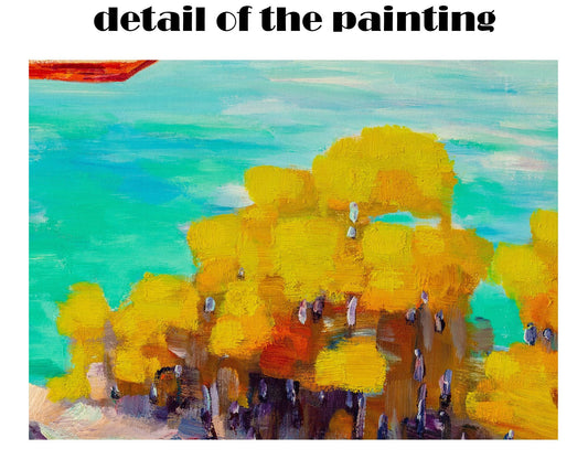 Original landscape oil paintings by Deniel Henry are a beautiful addition to any modern home. His abstract fine art is colorful and full of life, depicting landscapes and scenes in a unique and abstract way. The oversized paintings are a great way to make a bold statement and add some modern flair to your walls. They're also ready to hang and come with a beautiful texture that really brings the painting to life.
